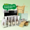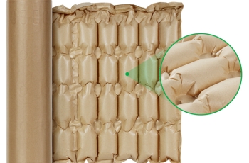 the features of a product made from 100% biodegradable material consisting of paper and bio film. The product offers easy disposal for consumers and provides superior cushioning for medium to heavy goods. It is perforated for convenient separation. Additionally, it helps save storage and shipping costs, and offers customized solutions.